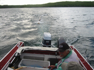 Vic had heard stories that there was good walleye fishing at the Wheeler River which is west of Key Lake Mine. That's why the boys decided to check it out, so off they went on a field trip. Pat was happy because he finally got to ride in a "smoking" truck. At one point though, Pat felt a little hot ... like a hot flash! George thought it was PMS, but it turns out Pat had hit the seat heater button by mistake. So it wasn't PMS, Pat was just being a bitch. And Pat and George had a strategy for getting pee breaks. They made Gene drink as much beer as they did so he'd have to stop too. After a few hours of exploring though, the ultimate verdict was that there would be no trip to the Wheeler in the future. It seems that every rock the Degenhardt boys had picked growing up had been hauled all the way to the Wheeler road and dumped there. Gene's truck took a beating and it was determined hauling boats up that road would be a nightmare.