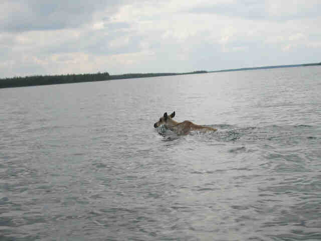 saw a Caribou on the island bank. It didn't seem to like us and