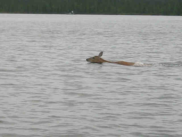 While we were trolling by the jack hole we came upon a deer swimming